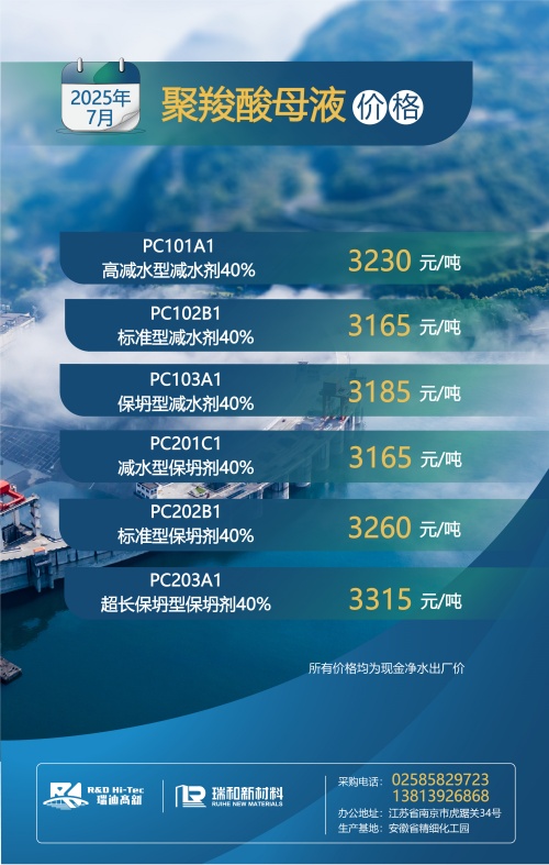 【聚羧酸系减水剂母液月度最新价格】丨2025年7月